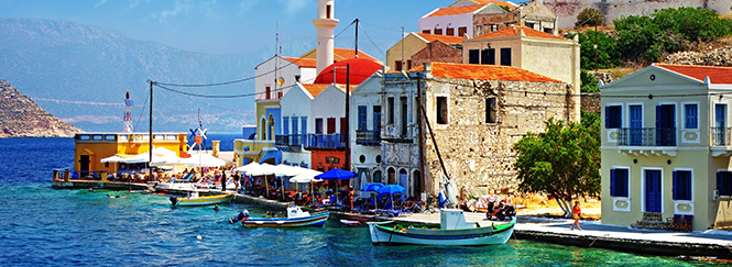 The caldera of Santorini is actually a basin,four miles in diamater which scientists and archaeologists have linked with the myth of Atlantis. The landscape consist of steel rocks and cliffs that towers above almost touching the sky. It is more than a thousand feet above the sea level and extends underneath the sea for an additional thousand feet, thereby creating a perfect harbor. The caldera has an elevation, which varies between 150 to 350 meters. The distance from one end of the island (Cape Exomitis) to the other end (Cape Mavropetra) is 18 km. The island's breadth varies from 2 to 6 km.